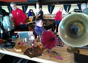 The Oregon Territory Antique Phonograph Society hosted 2 events the weekend of March 11 and 12. Bob and Cay Thomsen hosted a lovely meeting at their home in Vancouver, Washington on Saturday. Food and a large cake, with the OTAPS logo, greeted members. Much time was spent viewing Bob's collection that included 2 Class M Electric machines as well as other unique phonographs and phonograph advertising items.
