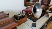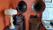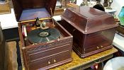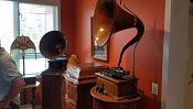 Many thanks to Russ and Joanna Ridley who hosted the OTAPS Canada experience in Victoria, BC. They were great hosts who provided great food, beautiful phonographs to look at, and phonograph mugs filled with goodies for us to take home!! There were OTAPS people from the States, the Vancouver BC area and Vancouver Island (Victoria and surrounding communities). I didn’t do an official count, but I believe there were about 25-30 of us enjoying the phonograph wonders of British Columbia. The beautiful Ridley home is filled with phonographs, music boxes and related items. Thanks again to Russ and Joanna for being such wonderful hosts and thanks for sharing your beautiful home, city, province and country with all of us.