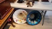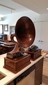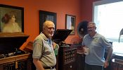 I second Stan's thoughts on the meeting. It was one of the best and if you missed it you really missed a good one. Great hospitality, great food and drink, and a fantastic gramophone home. It was nice to reconnect with some of the Canadian Collector’s who we don’t get to see very often (Daryl and Kim, Jan and Harold, Bruce, and, Don and then our fantastic Hosts Joanna, Finnegan, and, oh yes Russ. The door prizes were fantastic and are going to be a hard act to follow. Especially the coffee cup that documents the famous phono quote: