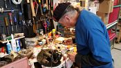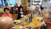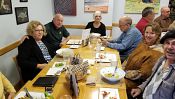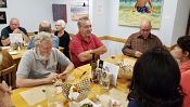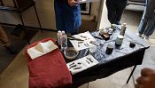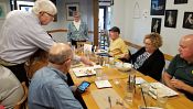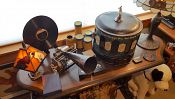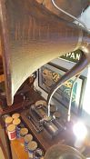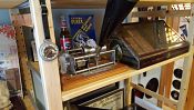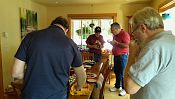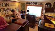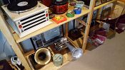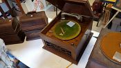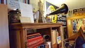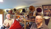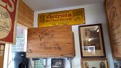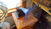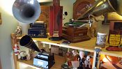 The fall, 2017 OTAPS meeting was at the home of Dan and Robert in Manzanita, Oregon. There were about 30 phonograph enthusiasts attending the event some from as far away as Victoria, B.C. Dan’s collection of phonographs and phonograph advertising is quite unique. The advertising is particularly noteworthy and features many pieces that once hung in phonograph dealer show rooms. These were not pieces sold to the general public. Even the garage contains advertising and phonograph items hung around the walls. In addition to the viewing of Dan’s collection, there was an active swap meet, a raffle with 3 members winning small phonograph related prizes, and three presentations by OTAPS members Dan Melvin, Nick Williams and Russie Ofria. Dan told the history of the Enrico Caruso painting hanging in his living room and demonstrated the Opera House Phonograph. Nick demonstrated a unique early carbon microphone, and Russie showed us how to add patina to several kinds of metal. All in all it was a beautiful day near the Oregon beach with plenty of delicious food and great conversation. -- Stan Stanford