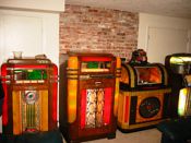 We visited Al's beautiful home after a day at the Expo Antique Show in Portland. Al has a world class Juke Box and phonograph collection. He generously played most of the Juke Boxes for the appreciative visitors from OTAPS. The Juke Boxes are colorful and lots of fun. The Swap Table and Parking Lot (street) action was in full swing. Esther provided great food to feed the weary OTAPS members.