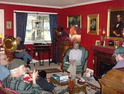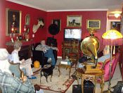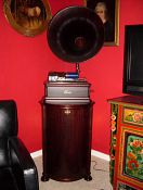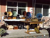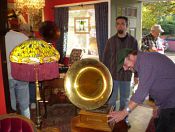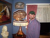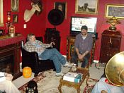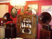 It was a very nice turnout at Jays self described Victorian Bordello/Funeral Home. Phonograph lovers came from near and far for a little nosh, shop talk, and shopping. Many fun machines for sale at Stan and Bobs Swap Shop out front. Inside, folks lounged about on intentionally uncomfortable parlor furniture amidst the sprinkling of his phonograph collection (see how many you can spot in the photos) to have a bite to eat, and catch up on each others doings. Jay went nuts this year at the Union show, and is still in the process of re-arranging his flat to display his finds properly. At dusk the Phono Fiends gathered up their new found treasures and flew off into the October night, to return yet again in the spring for another OTAPS gathering.